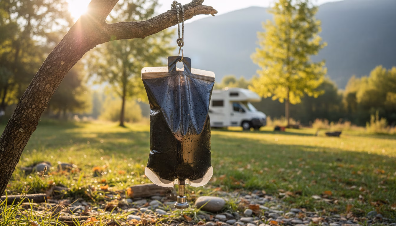 En dehors de la saison estivale, la douche solaire nomade montre ses limites très vite. En automne dans le nord de la France, l’eau n’atteint souvent pas 30°C même après plusieurs heures d’exposition. En hiver, le risque de gel du réservoir rend l’équipement inutilisable et potentiellement endommagé. Pour les voyageurs itinérants pratiquant toute l’année, une solution de chauffe complémentaire (réchaud, chauffe-eau 12V) reste indispensable. La douche solaire nomade doit être pensée comme un outil saisonnier ou géographiquement conditionné, pas comme une solution universelle.